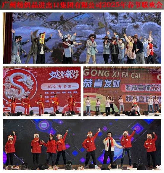 会议在欢乐的氛围中进行最后一项议程——纺出公司春节文艺表演。节目以纺出公司领导班子带领的《“我”的成长史》拉开序幕;《蛇么都要涨》以“三句半”的形式引起一片欢声笑语;创意舞蹈秀《多财多亿贺新春》把现场气氛推向高潮;《漫步蛇年富贵平安》用歌声表达了对新年的期许与美好祝福。